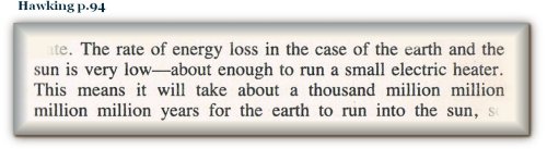 No less than the amount of mass of three suns is supposedly emitted as energy for the interaction of 65 suns’ worth; even though the amount of energy supposedly emitted by the Earth as a result of its interaction with the Sun is said by Hawking to be: