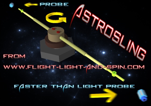 will improve stability and Cruithne may even be a source for fuel. Because of the way in which angular momentum accumulates, it could take any amount of time to power-up and reach velocities comparable to the velocity of light. But all that is required is for the probes on the outer edge of the Astrosling to accelerate at just 1G for 1 year in order to reach the velocity of light. It could perhaps even hold a passenger depending on how wide it is. The wider it is, the stronger the materials need to be. Incidentally,