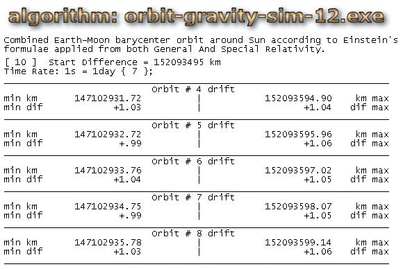 Mercury). There is uncertainty as to what the perihelion and aphelion of the barycenter actually are because all the websites looked at do not account for the change that the Moon causes to the Earth’s position. If we take the maximum to be at New Moon it could be 4641km more than the widely quoted typical answer of 152 098 232km; alternatively that amount could be the maximum including the 4641 caused by the Earth’s wobble at New Moon. So I have taken the claim to the maximum distance quite literally. But it matters little as a matter of principle because the changes made by the Relativities are proportional to those amounts. . |